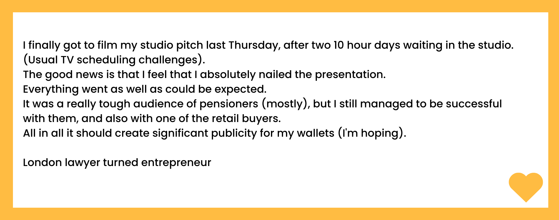 You don't want to be the one who never gets to the point or tells a boring story or never gets to the point...