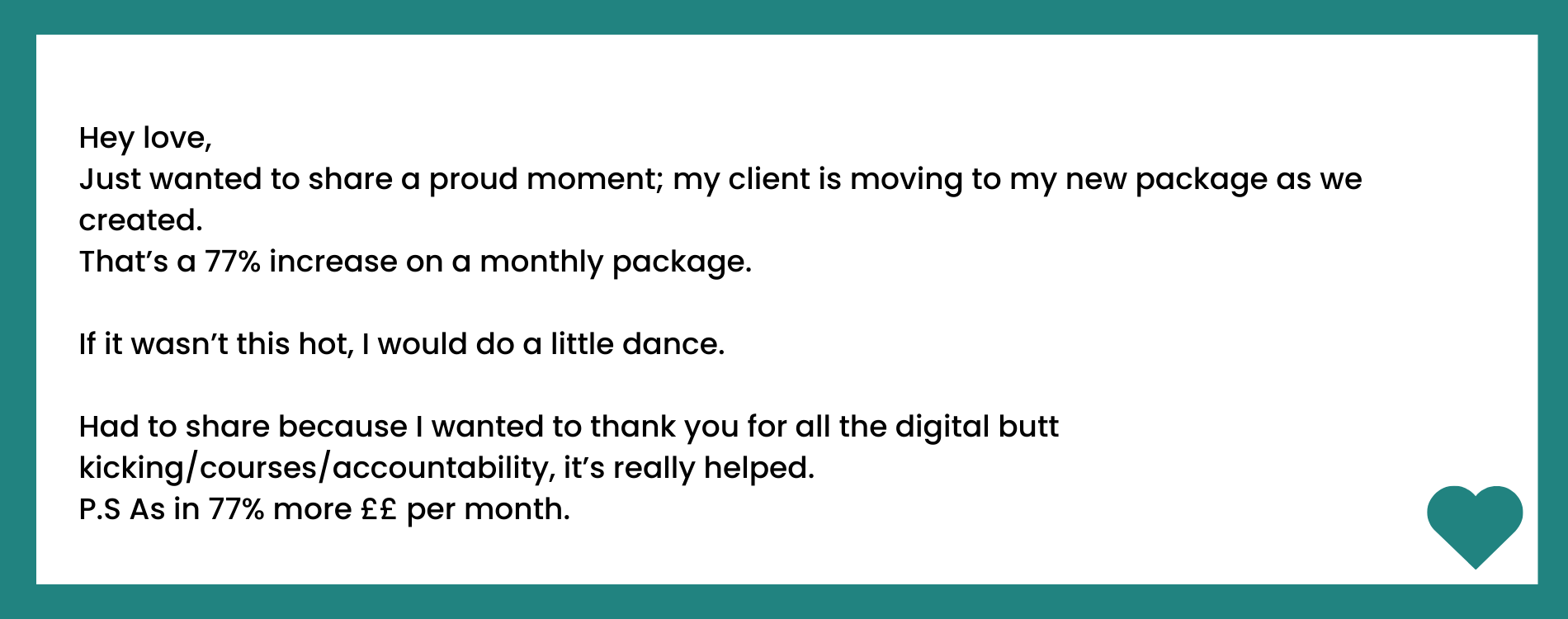 Just wanted to share a proud moment; my client is moving to my new package as we created.