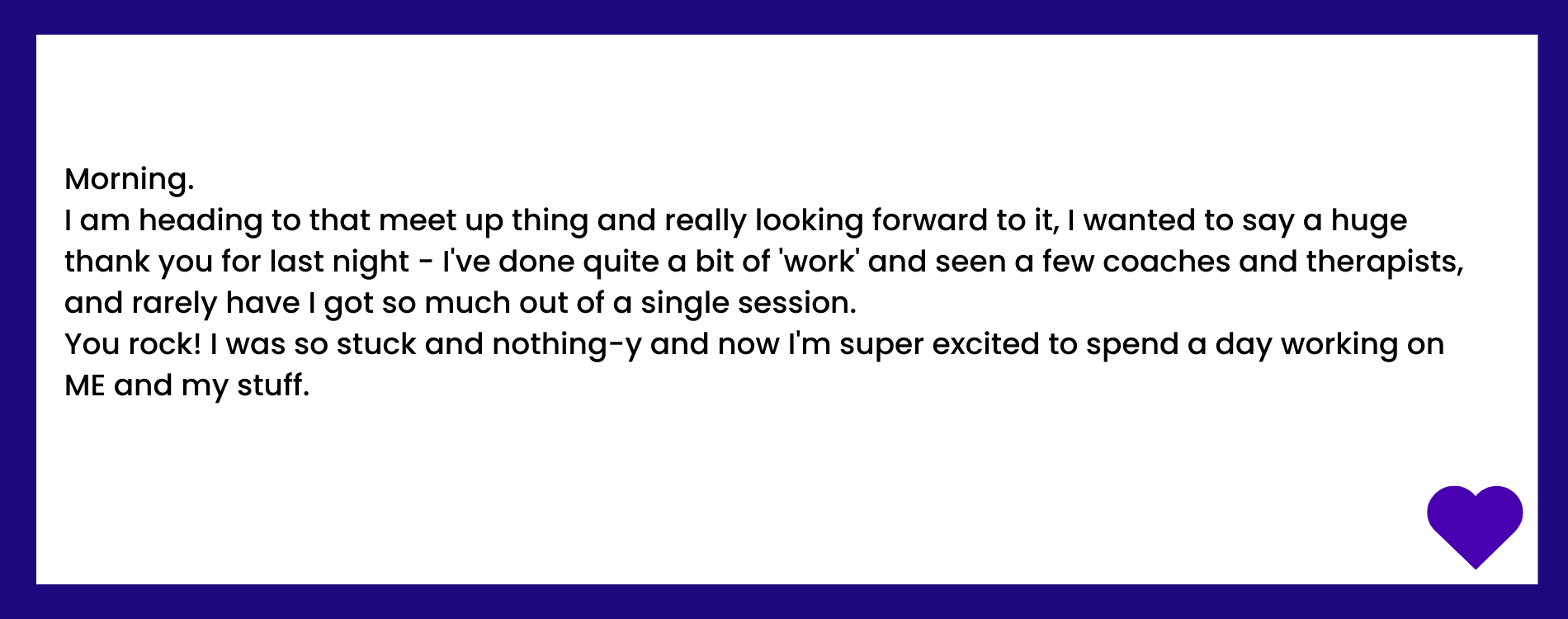 Pre work 1 x 2 hour session -online or in person in London. Plus two week of unlimited email/what's app/voice note support for 14 days following your session.